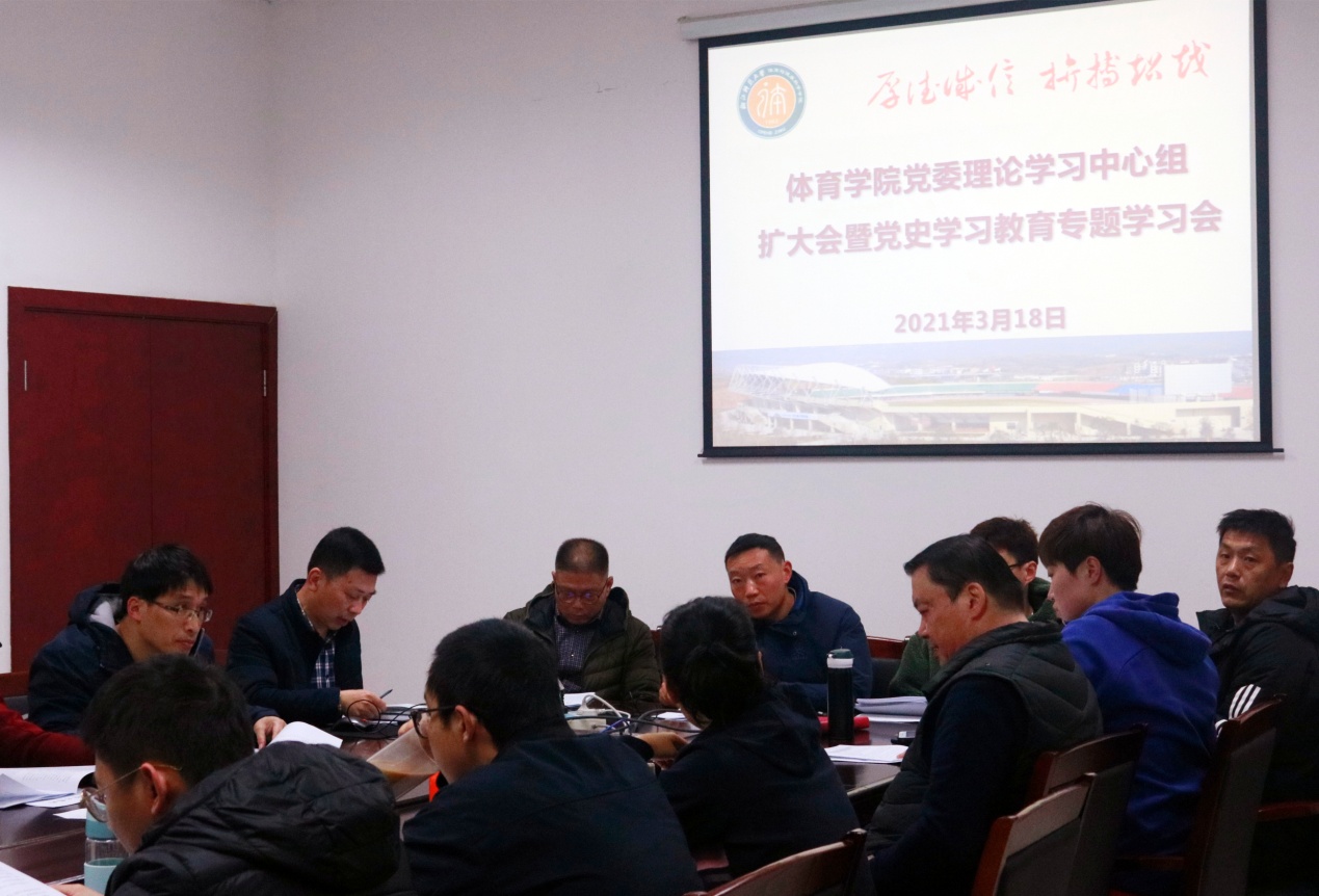 3月18日上午,学院召开党委理论学习中心组扩大会议,专题学习习近平总书记在党史学习教育动员大会上的重要讲话精神和2021年全国“两会”精神。学院党委理论学习中心组成员,各科室、教研室负责人、各党支部书记参加会议,会议由党委书记姜洪友主持。