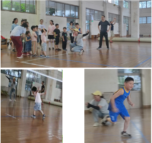 第二项活动内容为比比谁快。体育学院的活动当然得有体育特色,30米趣味接力活动走起!40多名小朋友们被分为两个组。只听口令响起,最前面的两位小朋友飞速跑向前方的墙壁,轻拍后返回,再跟下一位小朋友击掌交接。跑步伊始,小朋友们你追我赶,跑步姿势花花样百出,充满了童趣,有的双手侧后举,状如机翼;有的小朋友跑着跑着就到了排尾找家长去了;还有的忘了自己是哪个队了。最小的小朋友出生才有几个月,也被奶爸们抱在怀里顺利完成任务。一旁的家长们则自动变成了拉拉队员和摄影师。有几位家长感慨,小朋友们尽管年龄小,个子不高,跑得挺快,颇有几番长江后浪推前浪的意思。