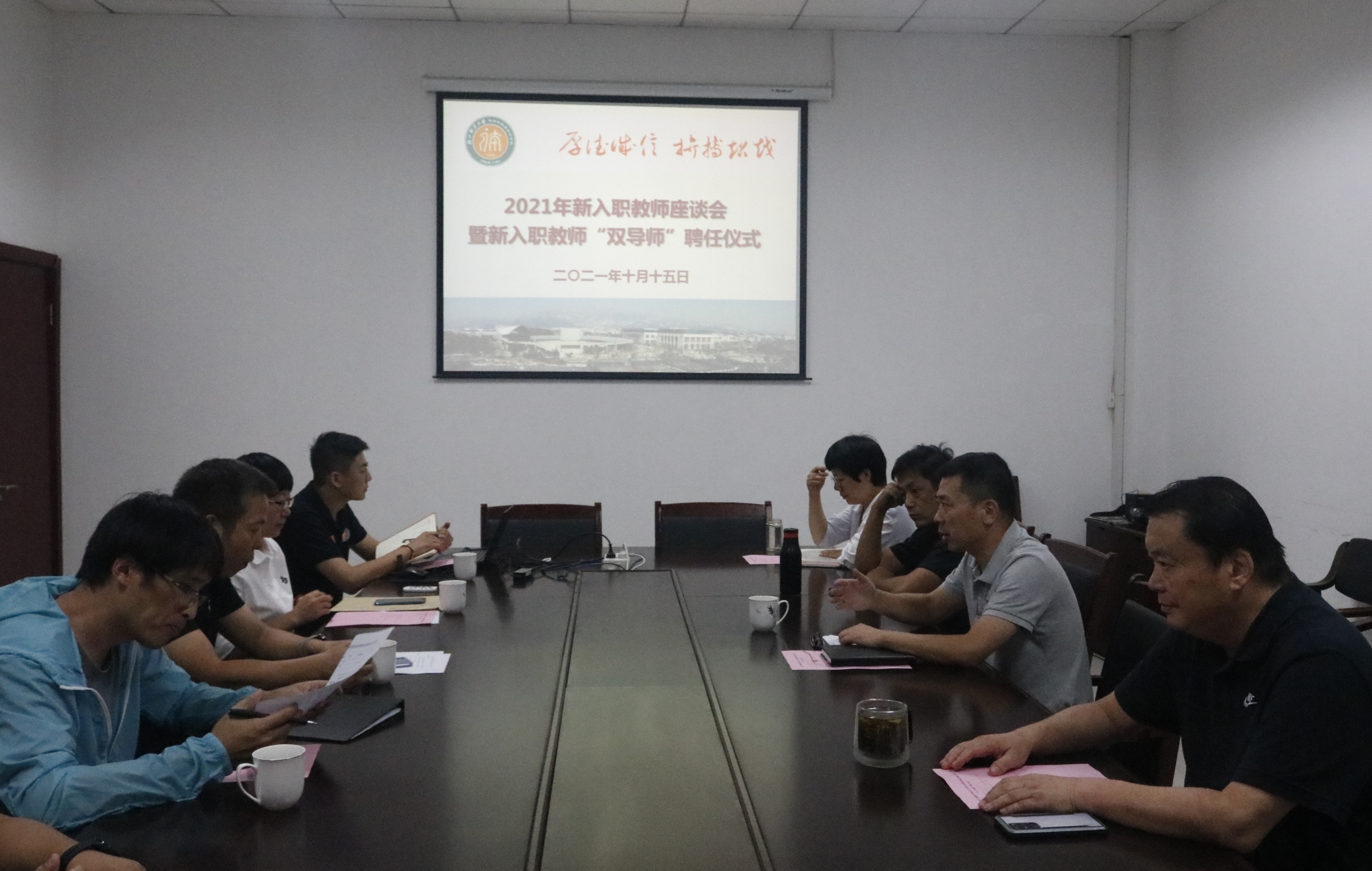 10月15日下午, 2021年新入职教师座谈会暨“双导师”聘任仪式在学院第二会议室举行。学院班子成员、新入职教师教学科研“双导师”以及新入职教师出席会议。学院党委书记姜洪友主持会议。