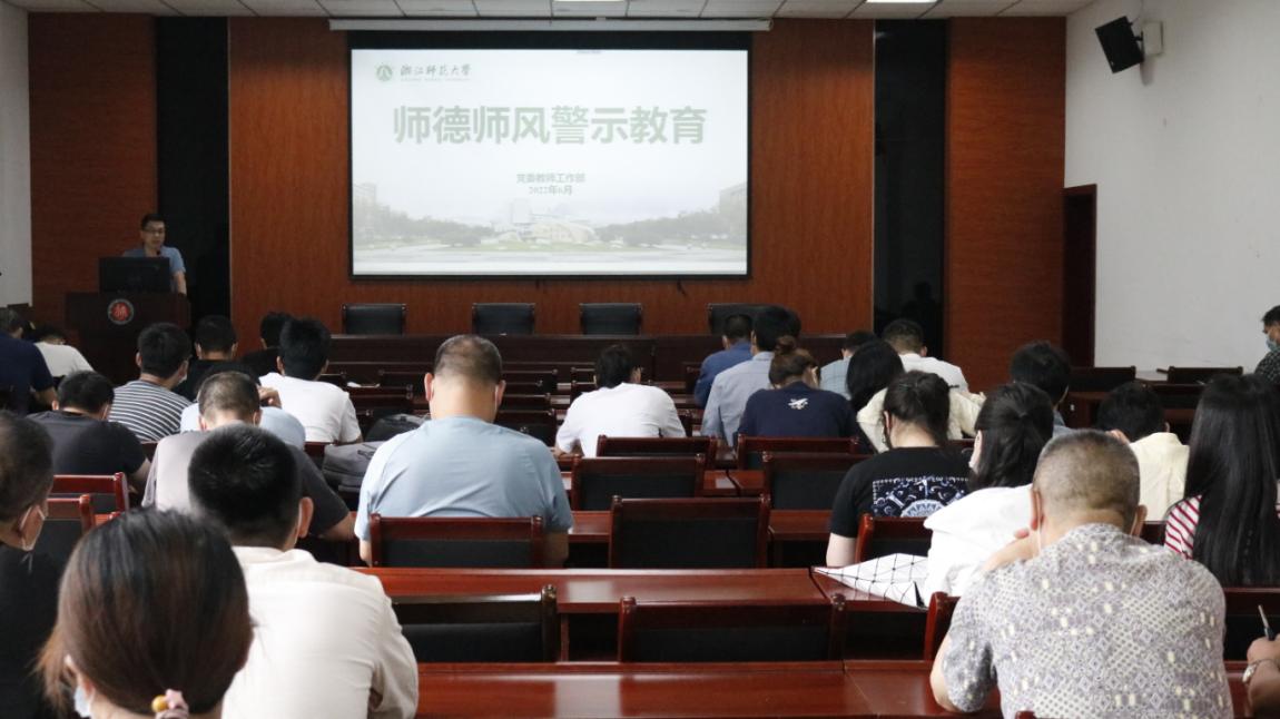 6月16日上午,学院在游泳馆第一会议室召开全院教职工会议,开展师德师风警示教育。