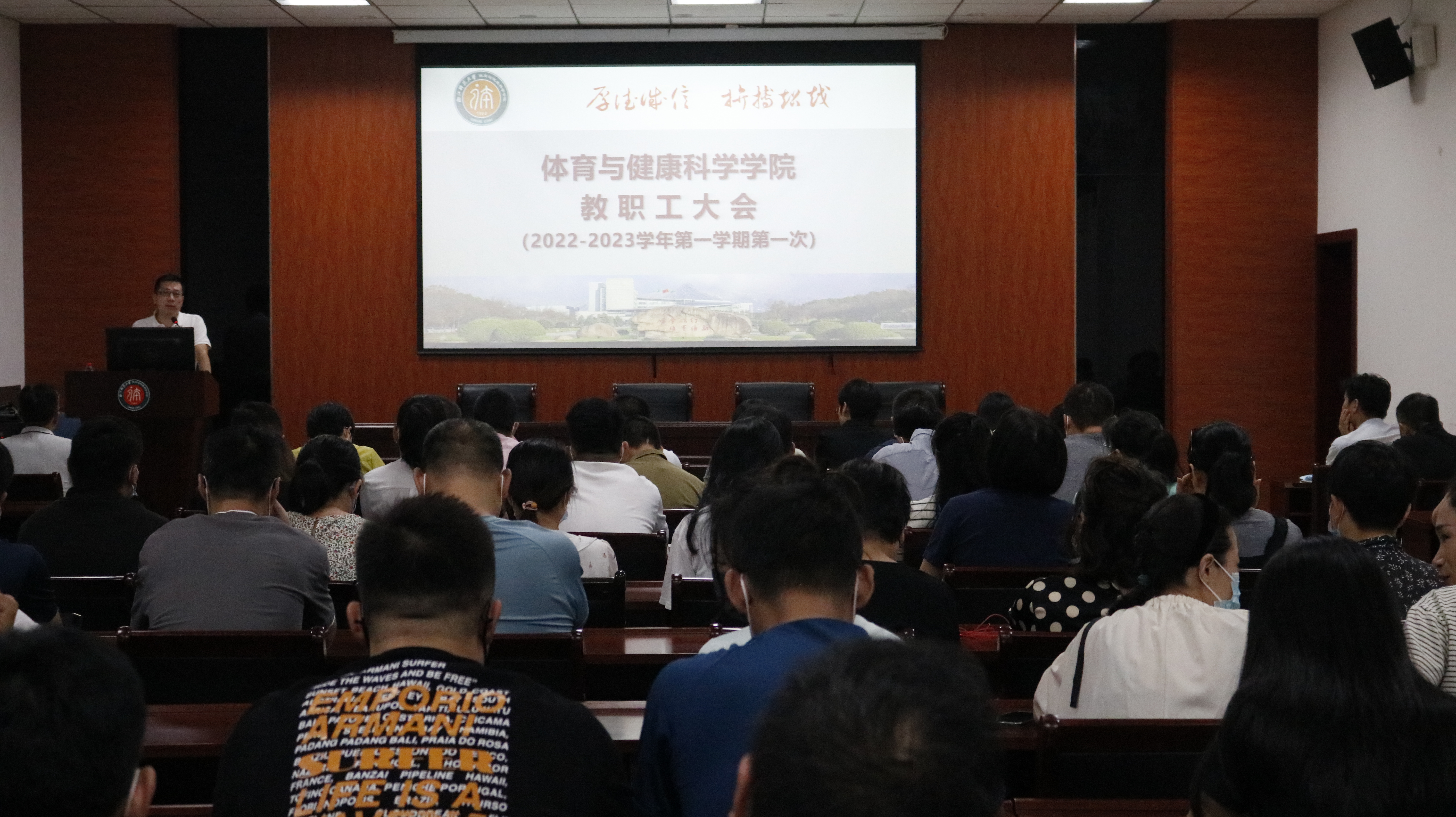 薛岚院长向全体教职工介绍了两位新加盟学院的青年博士,总结了暑期学院开展的主要工作,对新学期学院党政工作做了具体部署。暑期期间面对高温和疫情的双重压力,学院各项工作不停歇、不断线,各项工作进展顺利,学科建设系统谋划,招生工作圆满完成,创新创业再获佳绩,运动竞技赛场屡创佳绩,科研工作成效显著,社会服务积极拓展。新学期学院将继续聚焦重点工作,突破发展瓶颈,为学院事业的高质量发展奠定坚实的基础。