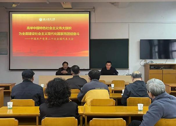 11月15日下午,为深入学习贯彻党的党的二十大精神,凝聚退休党员思想共识,学院退休教师党支部在长青楼三楼会议室举行党的二十大精神专题学习,学院党委书记姜洪友应邀作党的二十大精神宣讲。
