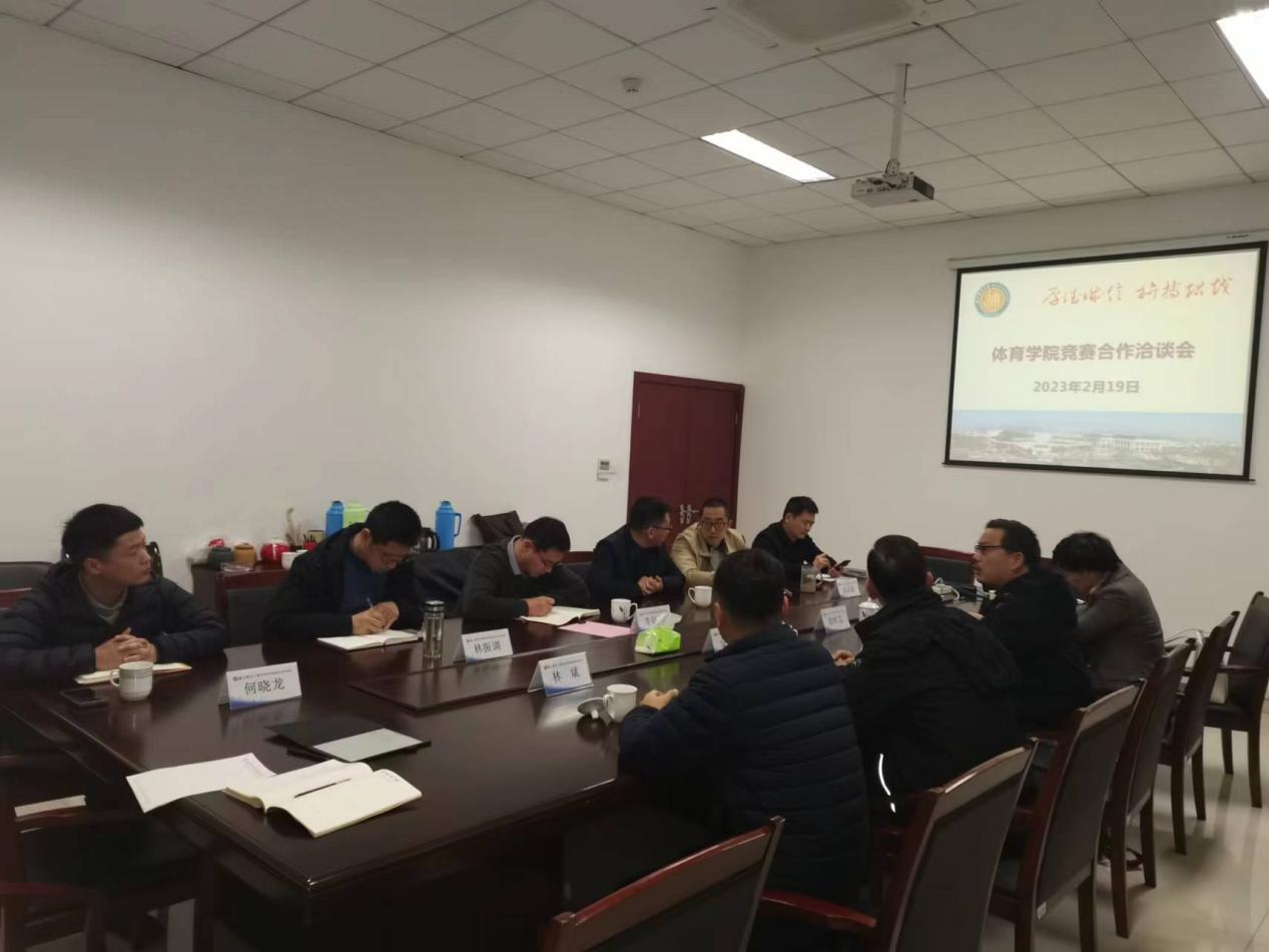 2023年2月19日上午,金华市游泳协会主席金建民,金华市龙舟协会主席翁时文、金华市电动冲浪板协会主席林斌、九三学社浙江师范大学委员会主委,九三学社金华市委员会副主委鲍嵘来我院洽谈合作事宜,学院全体班子成员参加会议,会议由院长李启迪主持。会议就选拔我院学生参加龙舟训练竞赛达成合作意向。根据双方合作意向,金华市龙舟协会将选拔我院体教及社体专业本科女生进行龙舟训练及参加高级别、高水平龙舟比赛。合作将促进双方优势互补,对于提高我院学生运动训练水平及竞技水平有着深远的意义。