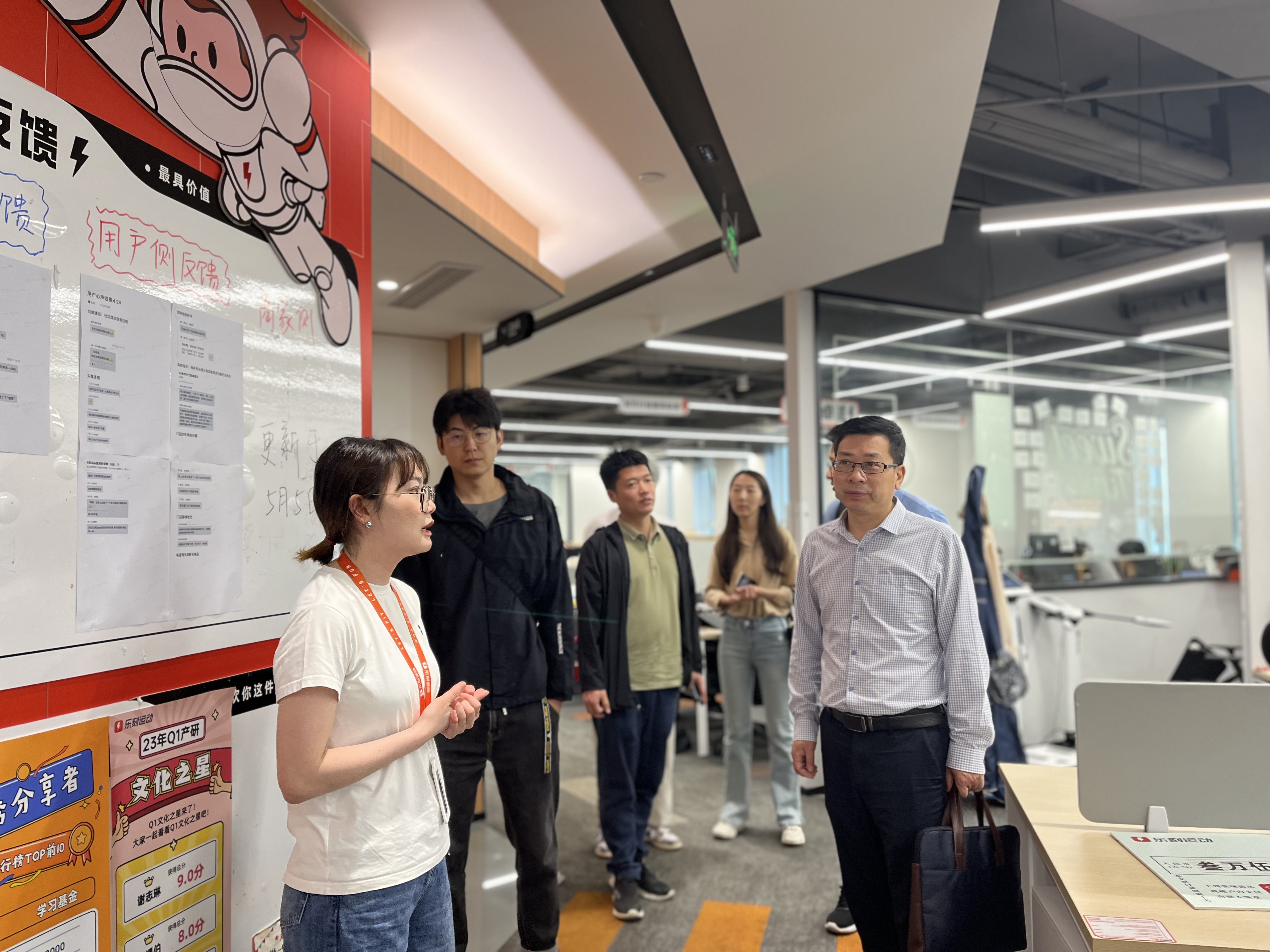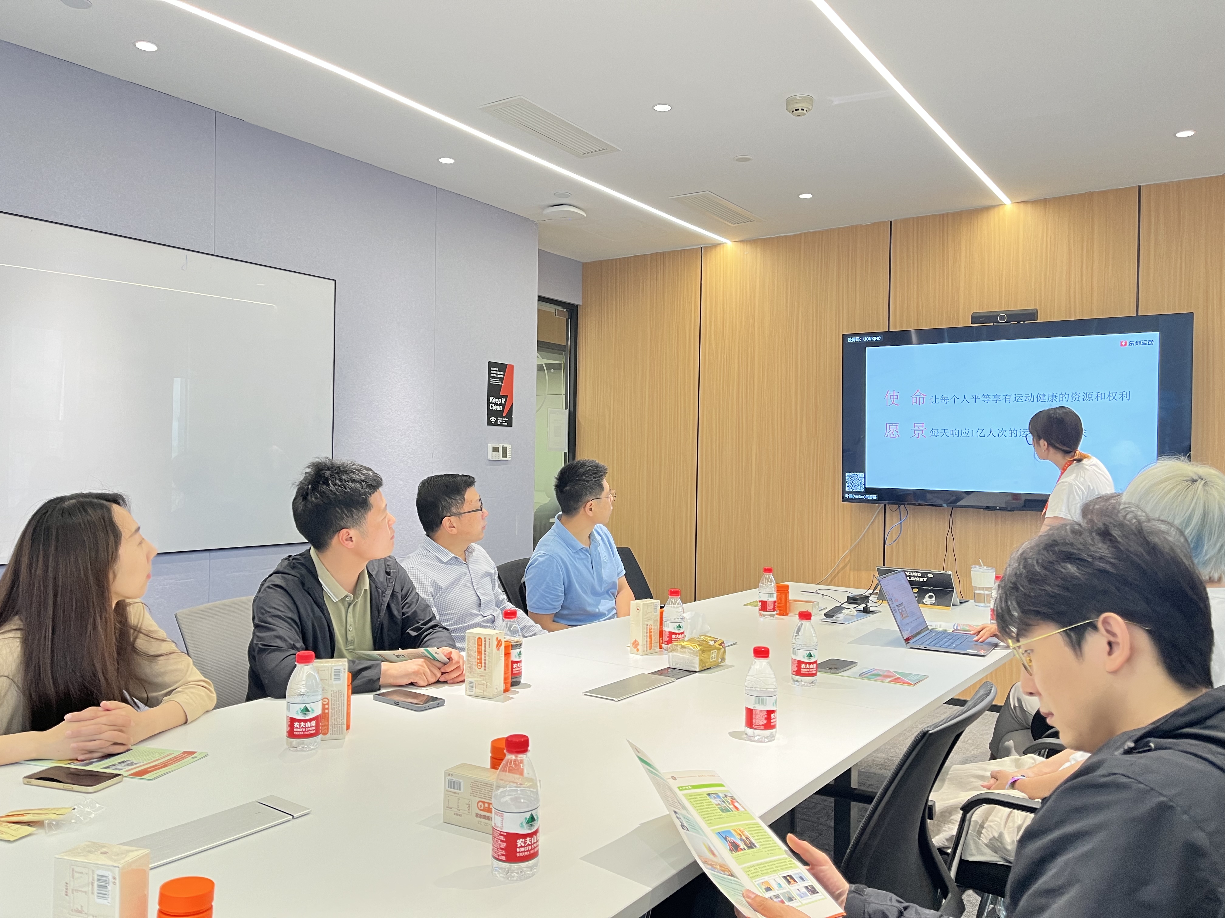 姜洪友书记一行在乐刻运动研训中心运营总监叶澜和团操研发总监何凡陪同下参观了乐刻运动总部办公区域,详细了解了企业的发展历程、企业文化及经营状况等情况。