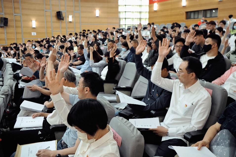 大会在庄严的国歌中拉开序幕。学院党委书记姜洪友代表学院党委向大会作题为《踔厉奋发,拼搏超越,为开创高水平教学研究型学院发展新局面而团结奋斗》的报告。