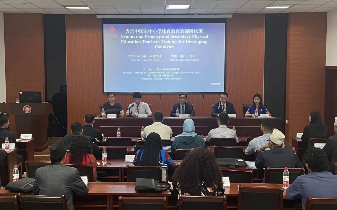 6月16日下午,由中华人民共和国商务部主办,浙江师范大学承办的发展中国家中小学体育教师研修班开班仪式在学院第一会议室举行。副校长张根福教授、学院党委书记姜洪友、副院长何晓龙、本次培训项目负责人李慧老师,以及参加培训的学员与会。会议由何晓龙副院长主持。