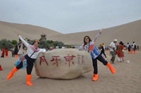 月牙泉,鸣沙山:山泉共处,沙水共生的奇妙景观著称于世,被誉为敦煌八景之一。其形酷似一弯新月而得名,古往今来以山泉共处,沙水共生的奇妙景观。大伙们也感受一下骑骆驼,堵骆驼,看骆驼红绿灯的景观。