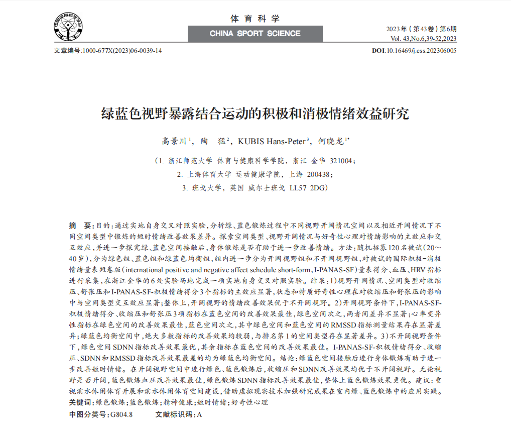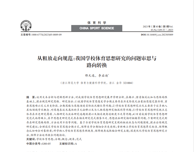 近日,体育学顶级期刊《体育科学》2023年第5期和第6期接连发表了我院两份研究成果。