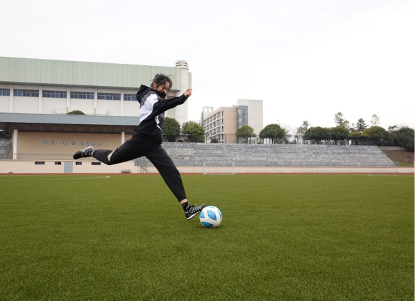 为了实现足球梦,她凭着一股不服输的拼劲儿,怀揣着坚持不懈的精神和对体育的热情,通过十余载刻苦训练,一步一个脚印,行稳致远,最终以全省133名的成绩如愿以偿地考入浙江师范大学体育教育专业。“踩在崭新的足球场上,我感到无比的幸福,终于实现了儿时的梦想!接下来的日子里,我也将更加珍惜每一次学习机会。”在国家A级教练员彭飞老师带领下,她接触到更完备的运动训练设施、更系统的训练安排及更广阔的学习平台,她的足球梦也仍在不断顽强生长。每天,天还没亮就爬起来训练,夜深了才不舍地回到寝室。当然,功夫不负有心人。正因她的勤奋努力,在学业、科研竞赛、学生工作等方面她样样不落,曾获国家奖学金、省政府奖学金、三好学生标兵奖项和荣誉30余项。