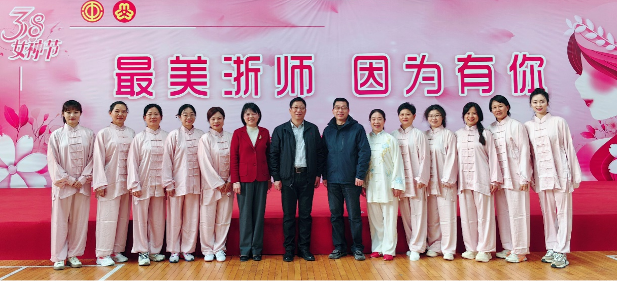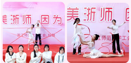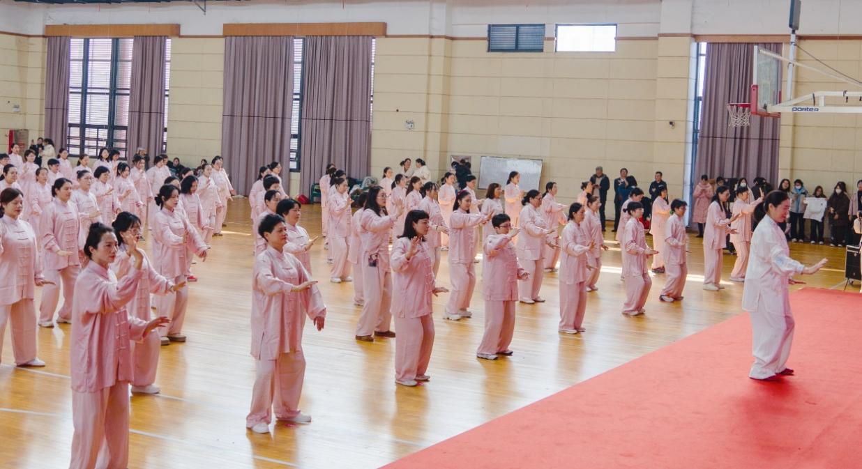 此外,在学校工会举办的八段锦集体展示活动中,学院女教工们积极响应并参与,我院骆春燕老师更是作为领操者带领全员两百多名女教工顺利圆满的完成八段锦活动,与大家共同完成了精彩的表演,尽显体院女教工的飒爽英姿。另外,我院尚蓉老师在活动中作为开场第一个节目,为大家展示了精湛的艺术体操表演,尚蓉老师专业且优美的展示掀起了活动的首个热潮,赢得台下女教工们热烈的欢呼和掌声。
