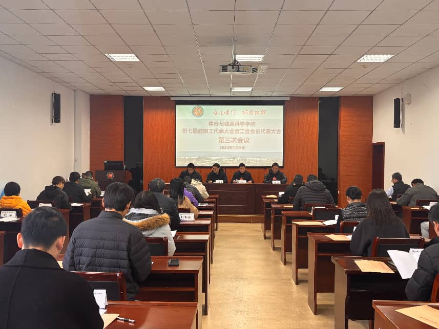 1月9日下午,体育与健康科学学院第七届教职工代表大会暨工会会员代表大会(“双代会”)第三次会议在学院第一会议室隆重举行。学院“双代会”正式代表齐聚一堂,共商学院高质量发展大计。会议由学院党委副书记、纪委书记林振调主持。